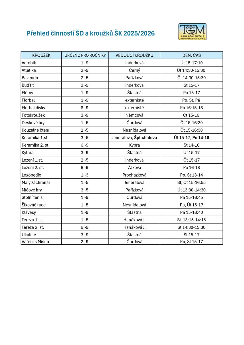 15. 9. začínáme - zájmová činnost ŠD, ŠK